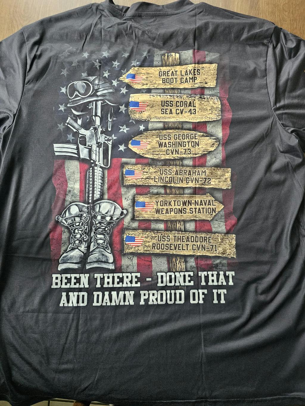 My son absolutely loved this shirt. The material is awesome and he’s so proud to let everyone know he is a veteran and as lol the duty stations he serviced over the years.