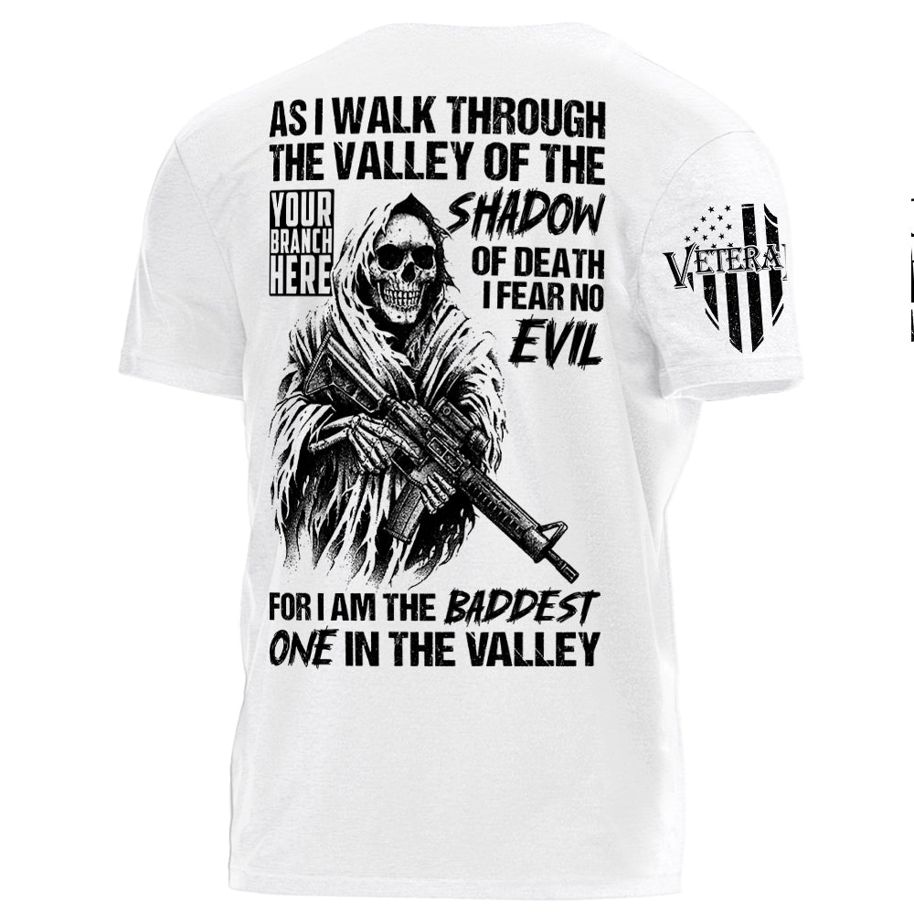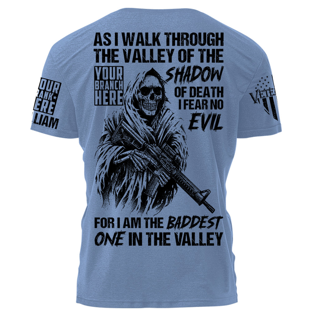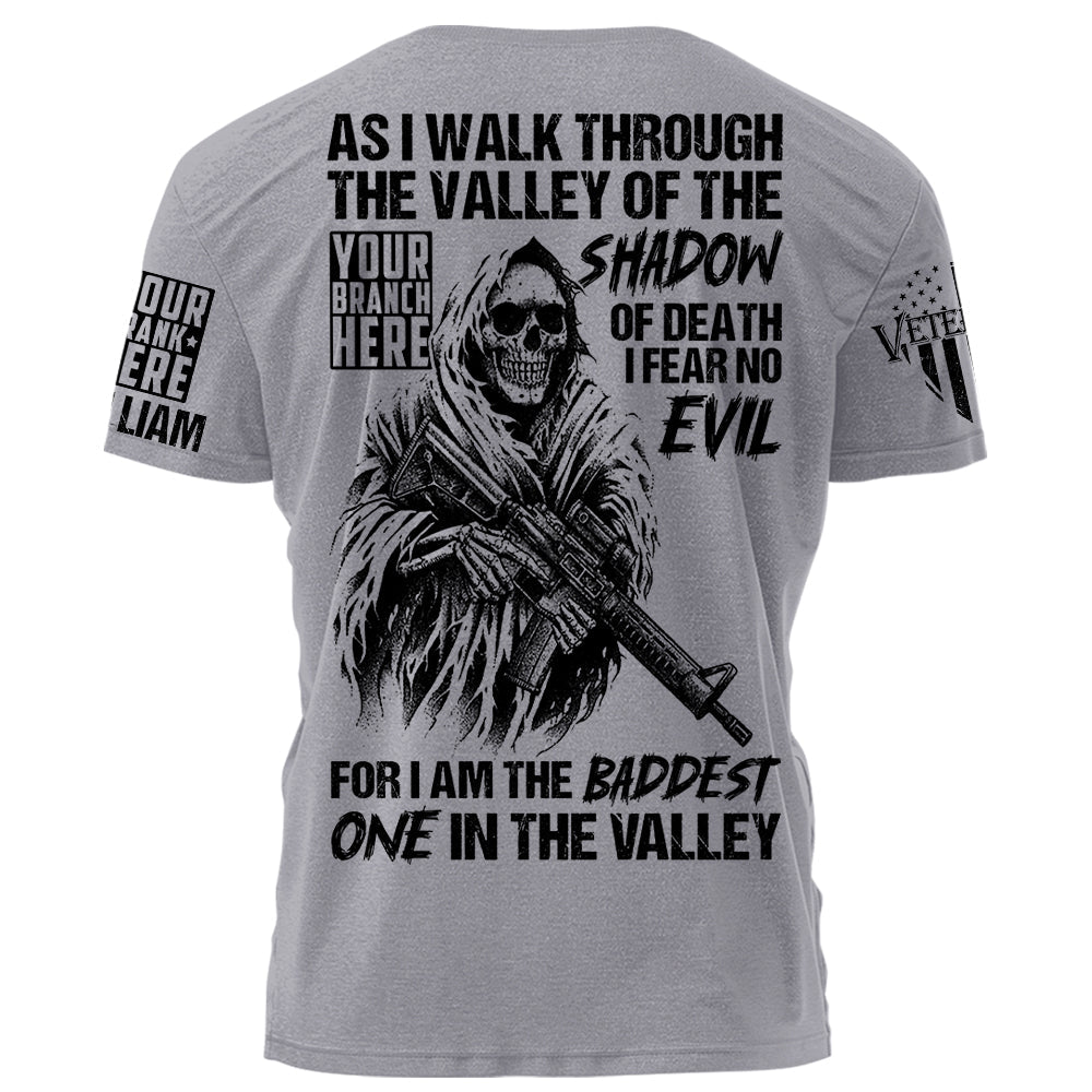 As I Walk Through The Valley Of The Shadow Of Death I Fear No Evil For I Am The Baddest One In The Valley Personalized Shirt For Veteran H2511