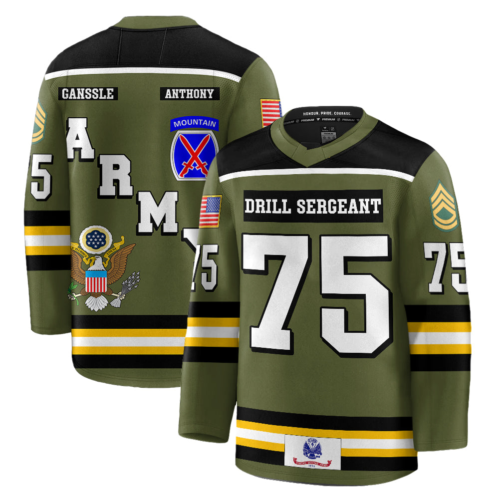 Custom All Branches US Military Hockey Jersey Rank Division Name For Military Retirement Veteran Dad Grandpa H2511