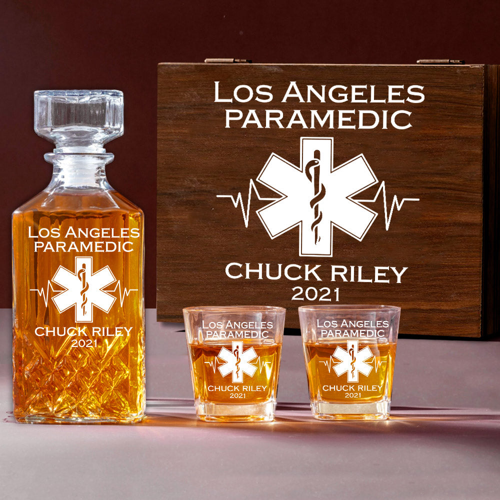 Custom EMS EMT Firefighter Decanter Set Custom Whiskey Decanter Set Paramedic Gift H2511