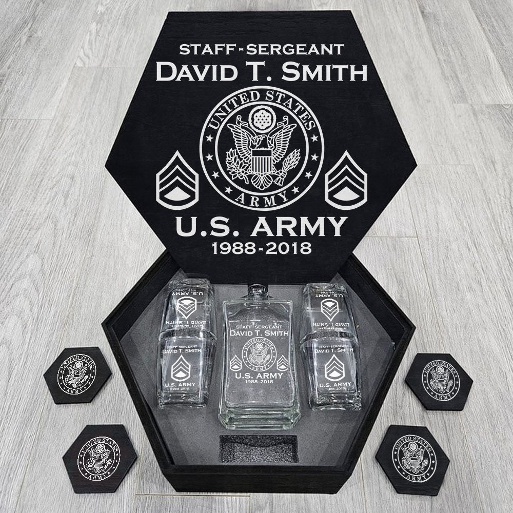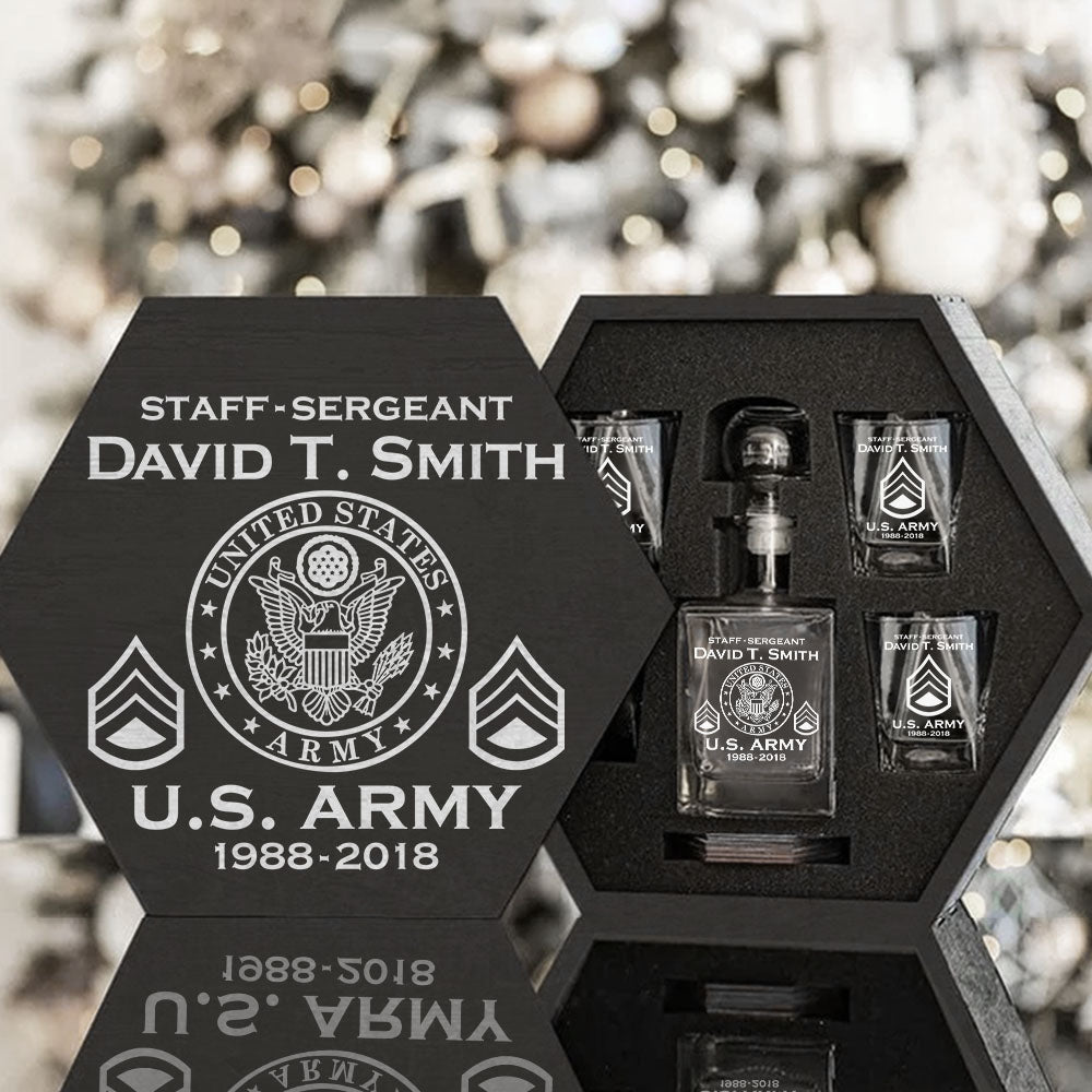 Custom Military Hexagon Decanter Set Full Custom Whiskey Decanter Set For US Military Retirement Gift H2511