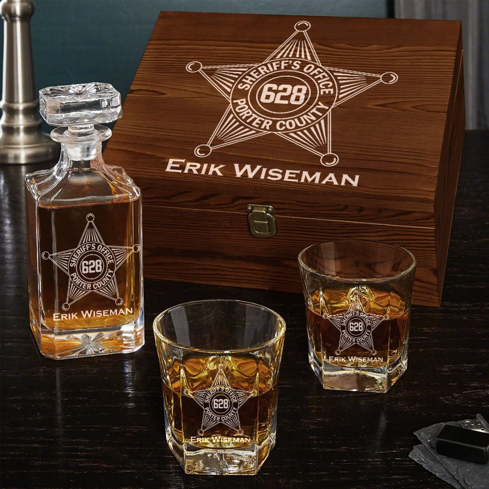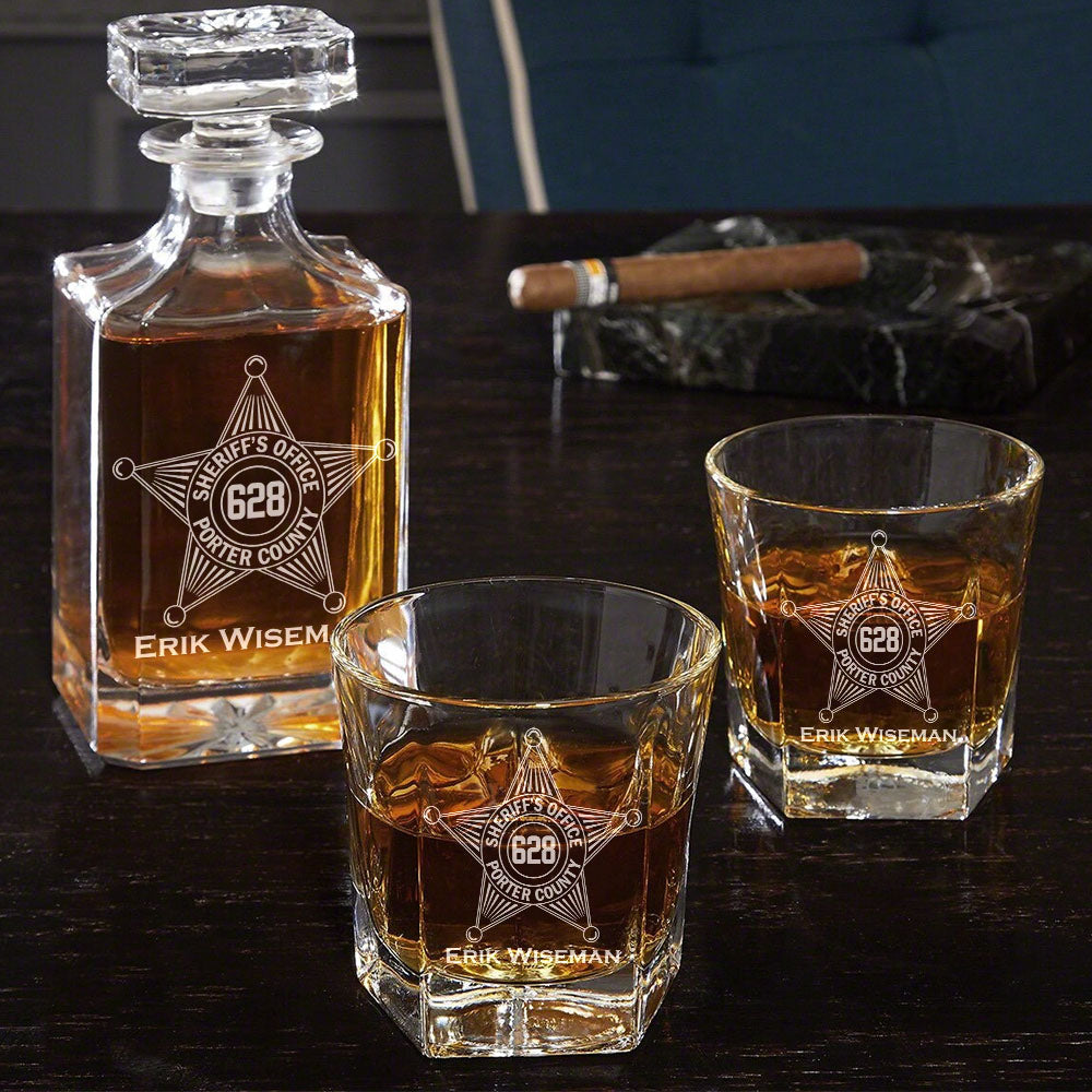 Deputy Sheriff Badge Decanter Set Gift For Sheriff Retirement Police Decanter Set H2511