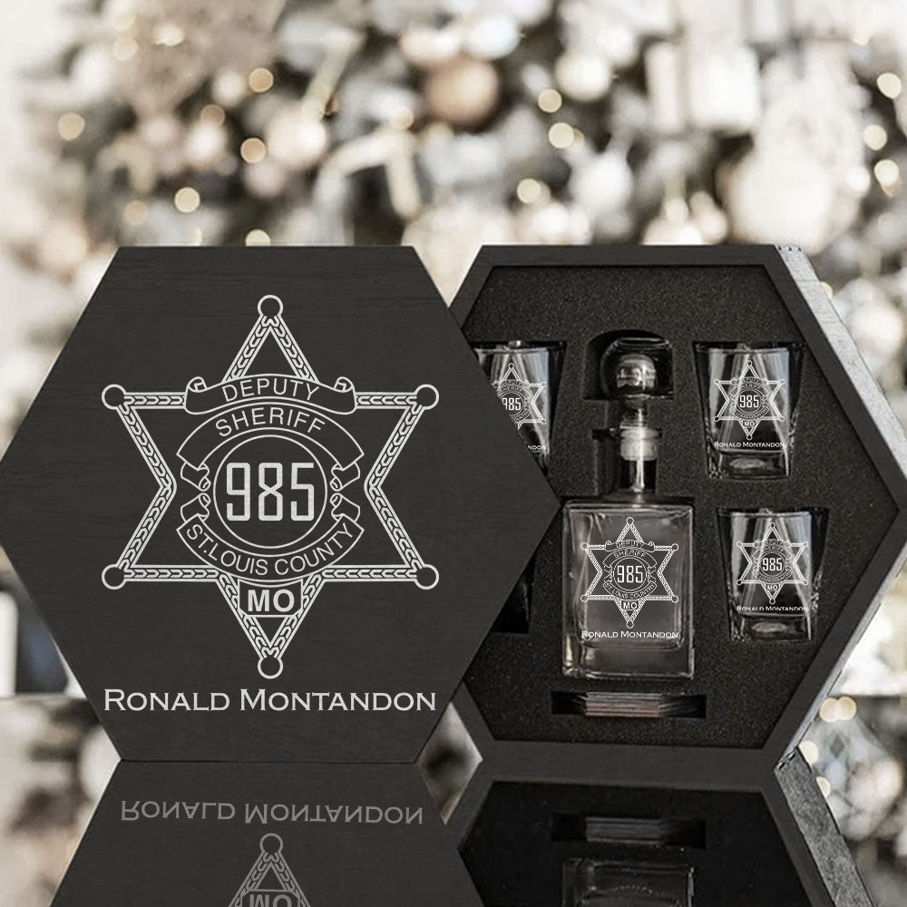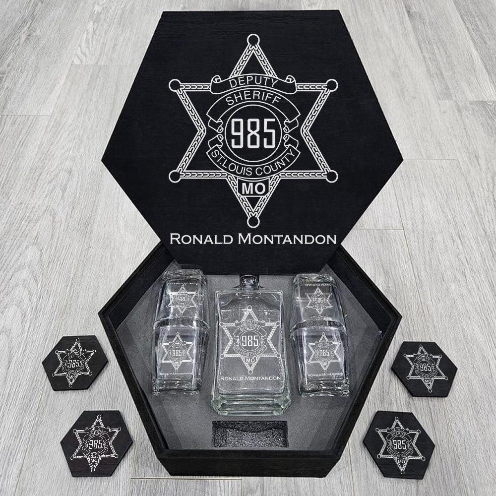 Deputy Sheriff Badge Hexagon Decanter Set Full Gift For Deputy Sheriff Law Enforcement H2511