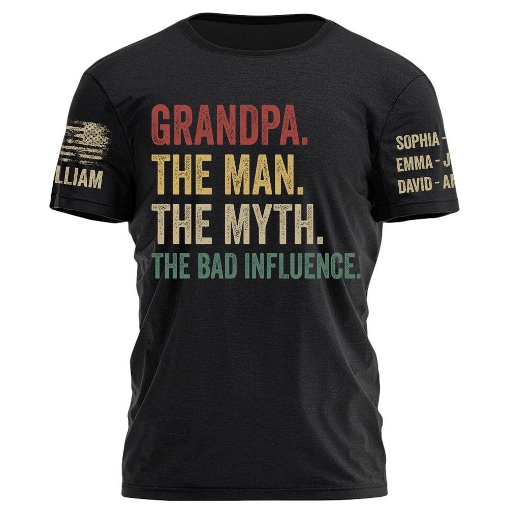 Grandpa The Man The Myth The Bad Influence Personalized Shirt For Grandpa Custom Nickname and Kid's Name H2511