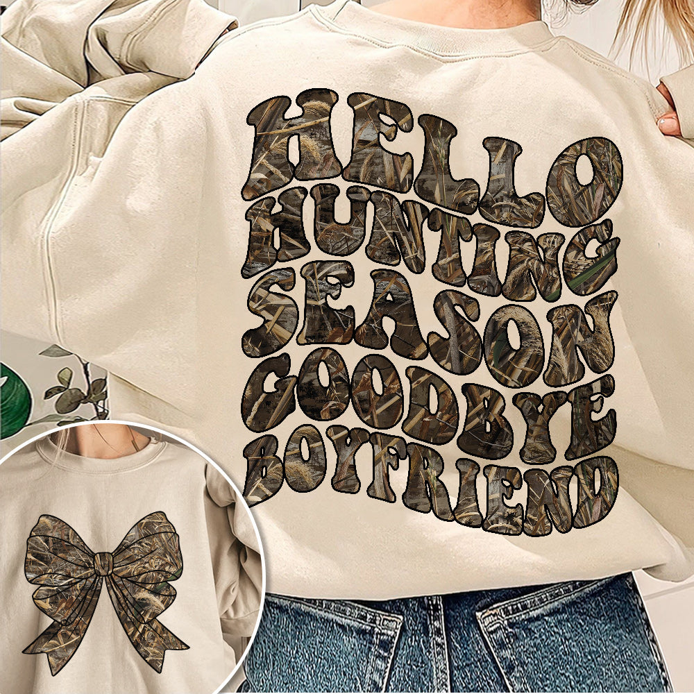 Hello Hunting Season Goodbye Boyfriend Camo Coquette Bow T Shirt Gift for Her H2511