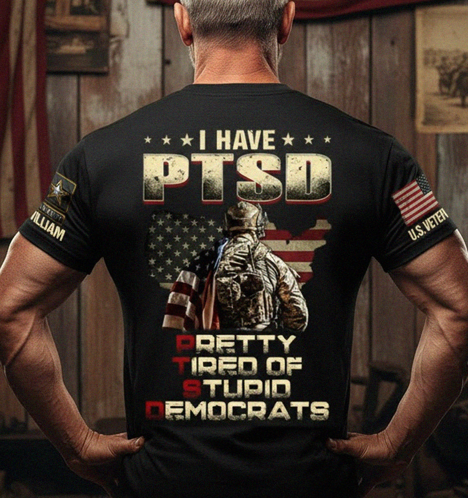 I Have PTSD Pretty Tired Of Stupid Democrats Personalized Grunge Style Shirt For Veteran H2511