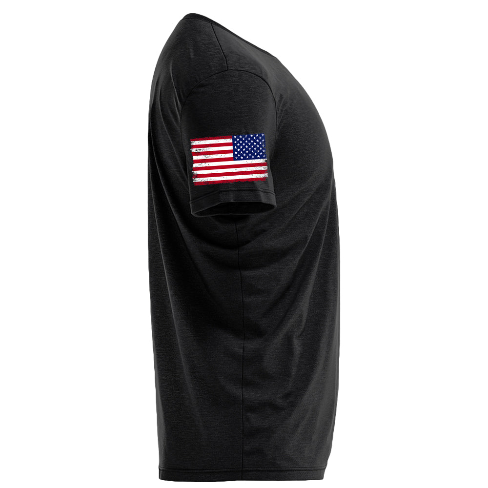 - Double-needle neck, sleeves, and bottom hem.