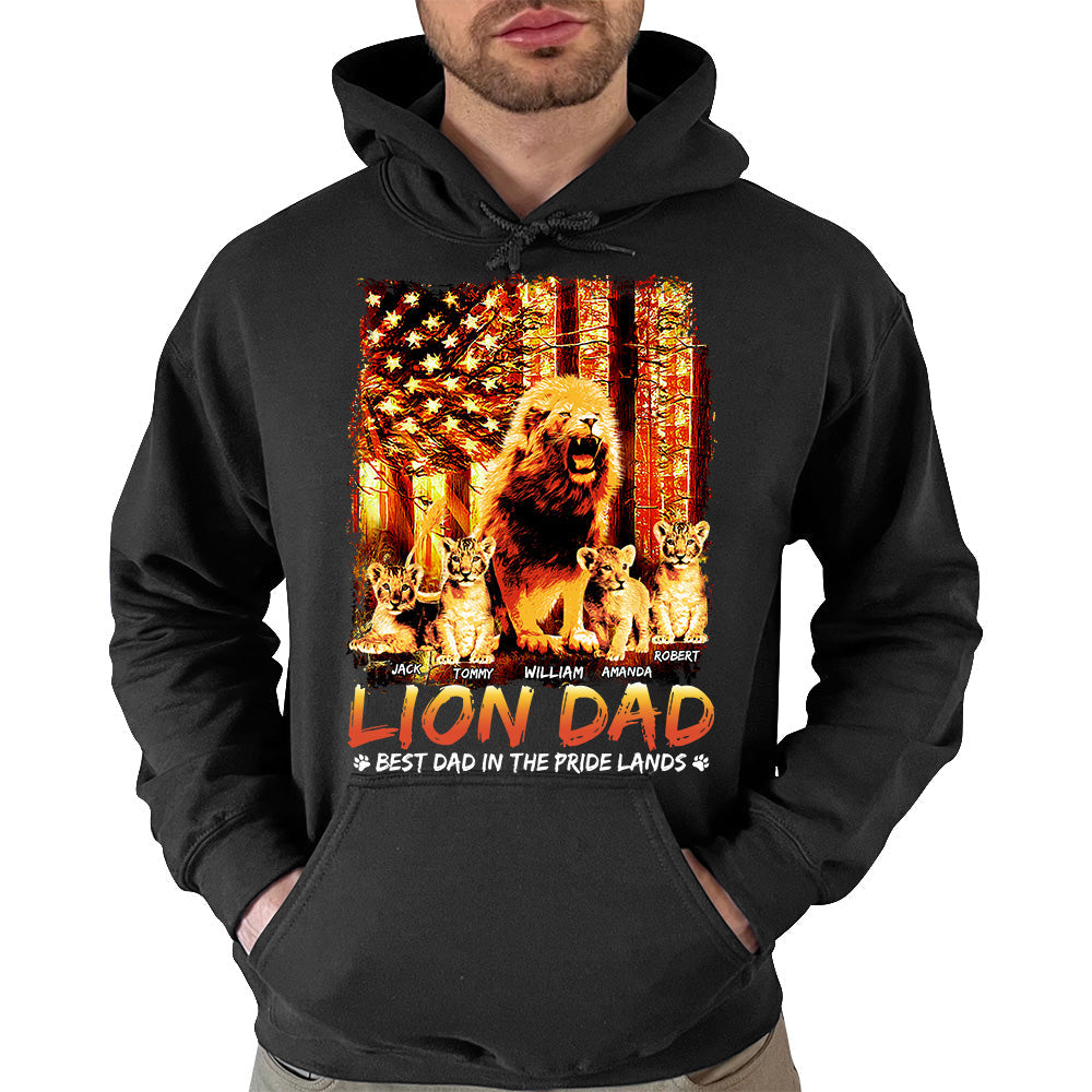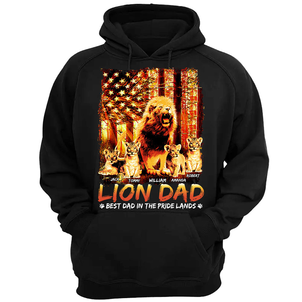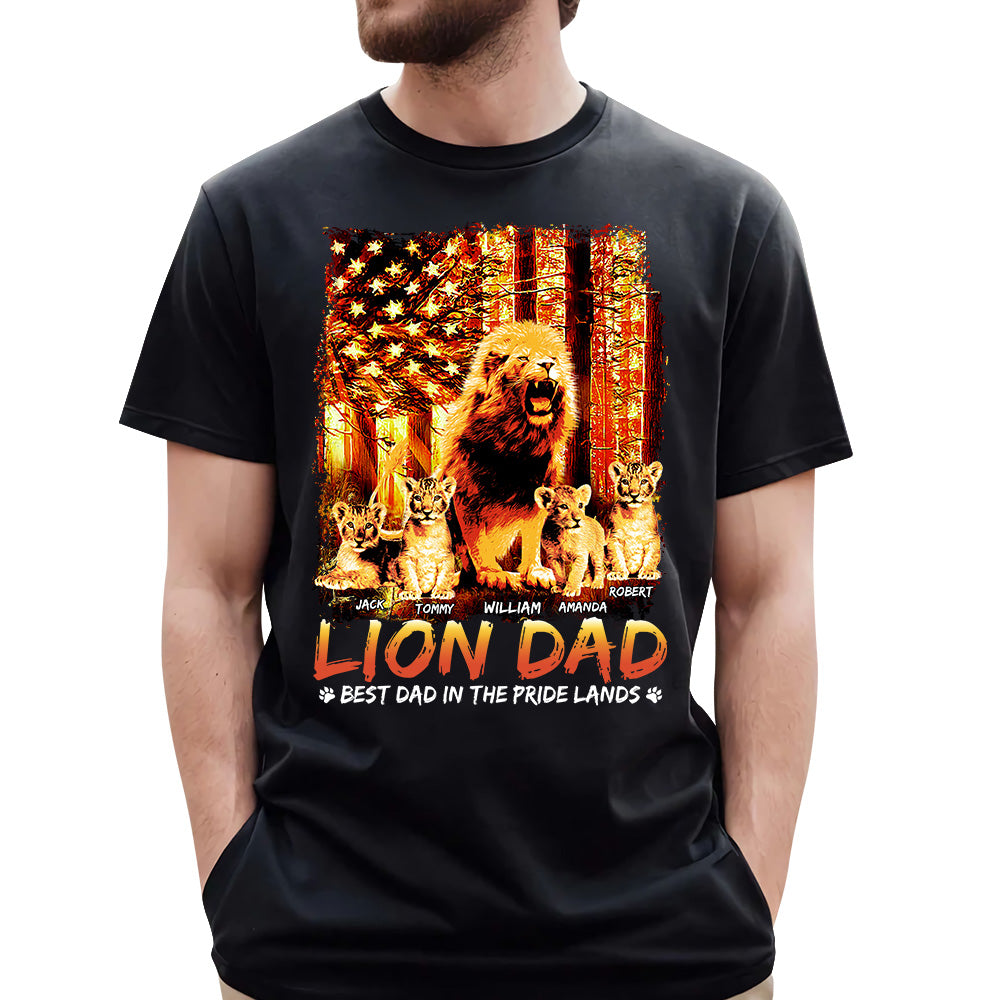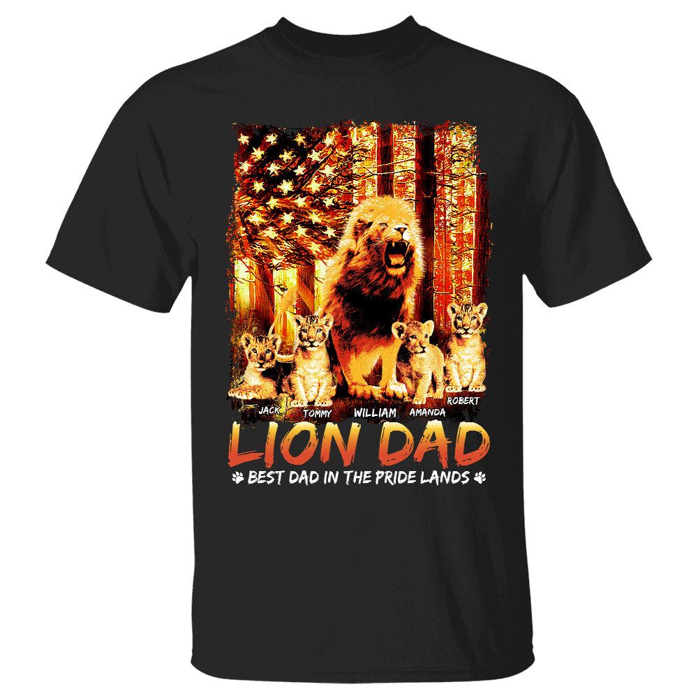 Lion Dad Best Dad In The Pride Lands The Sun American Flag Personalized Shirt For Dad Grandpa Father's Day Gift H2511