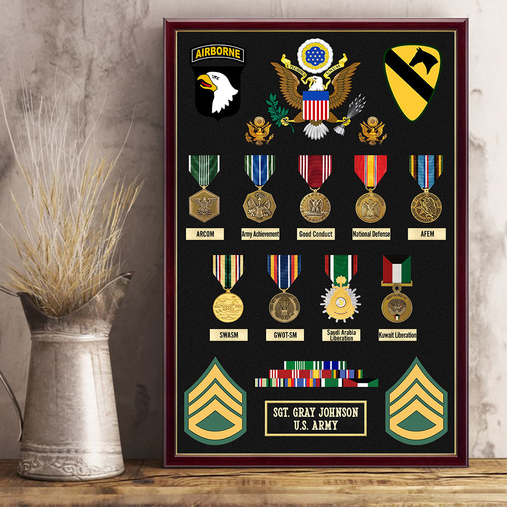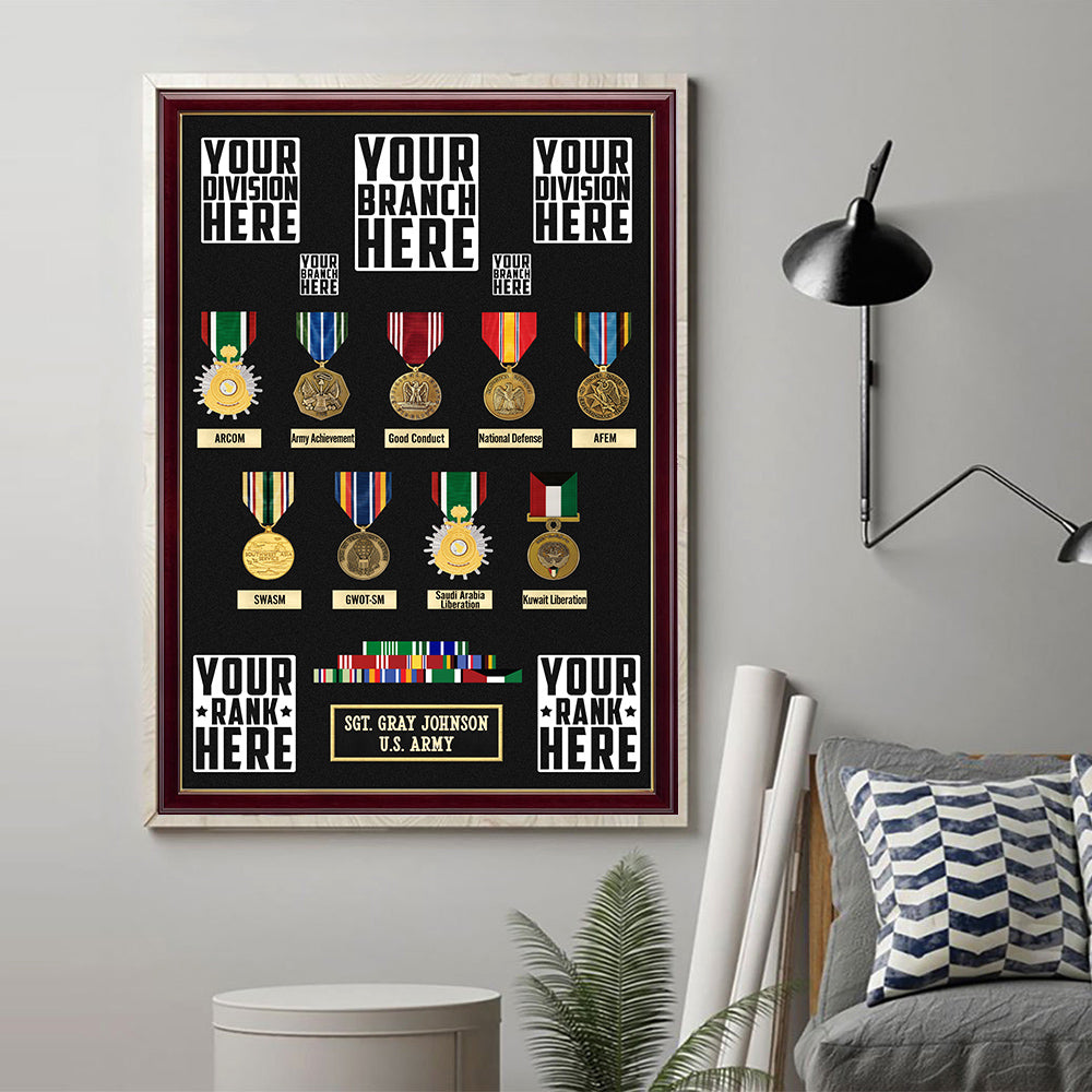 Military Shadow Boxes Personalized Poster Canvas For Veteran Custom Medals Ribbons Rank Division Gift For Veteran Dad Grandpa H2511