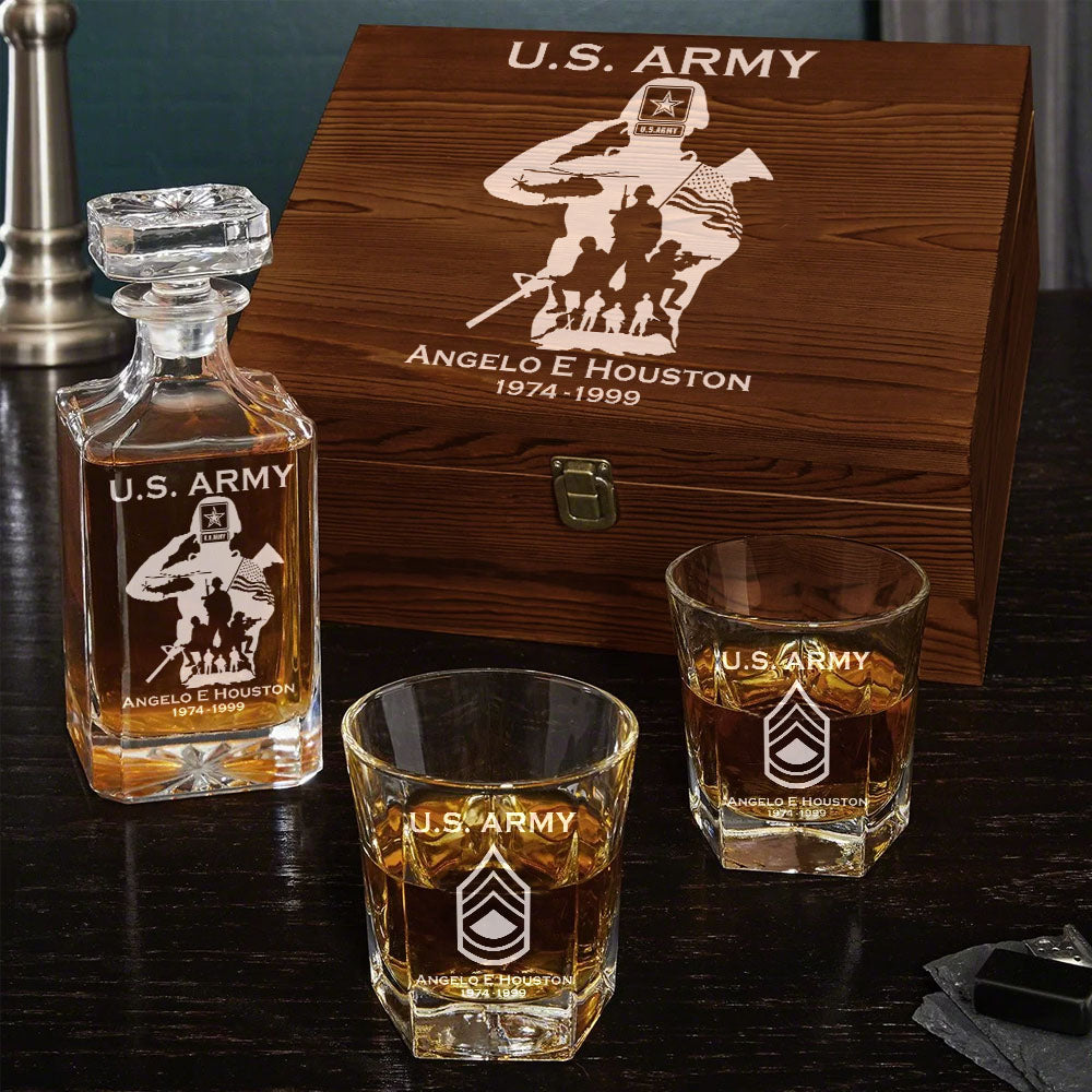 Military Veteran Soldier American Troops Whiskey Decantert Set Gift For Veteran Dad Grandpa H2511