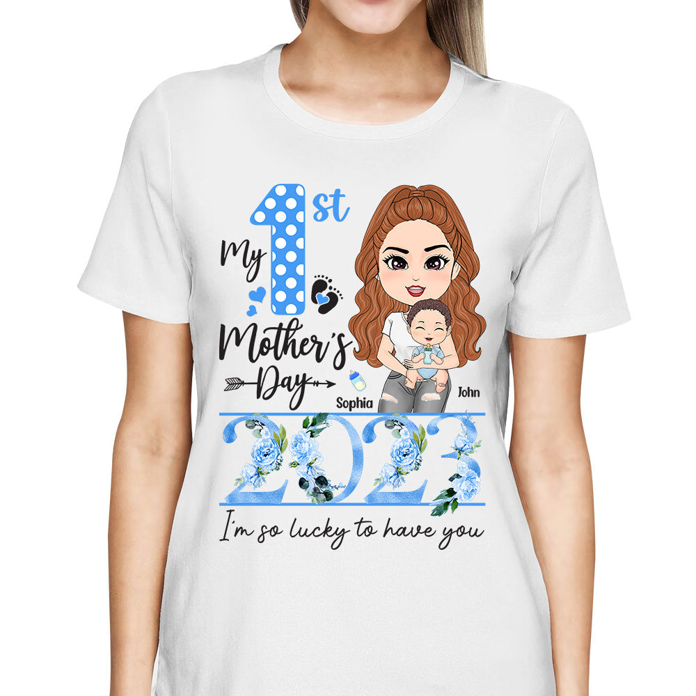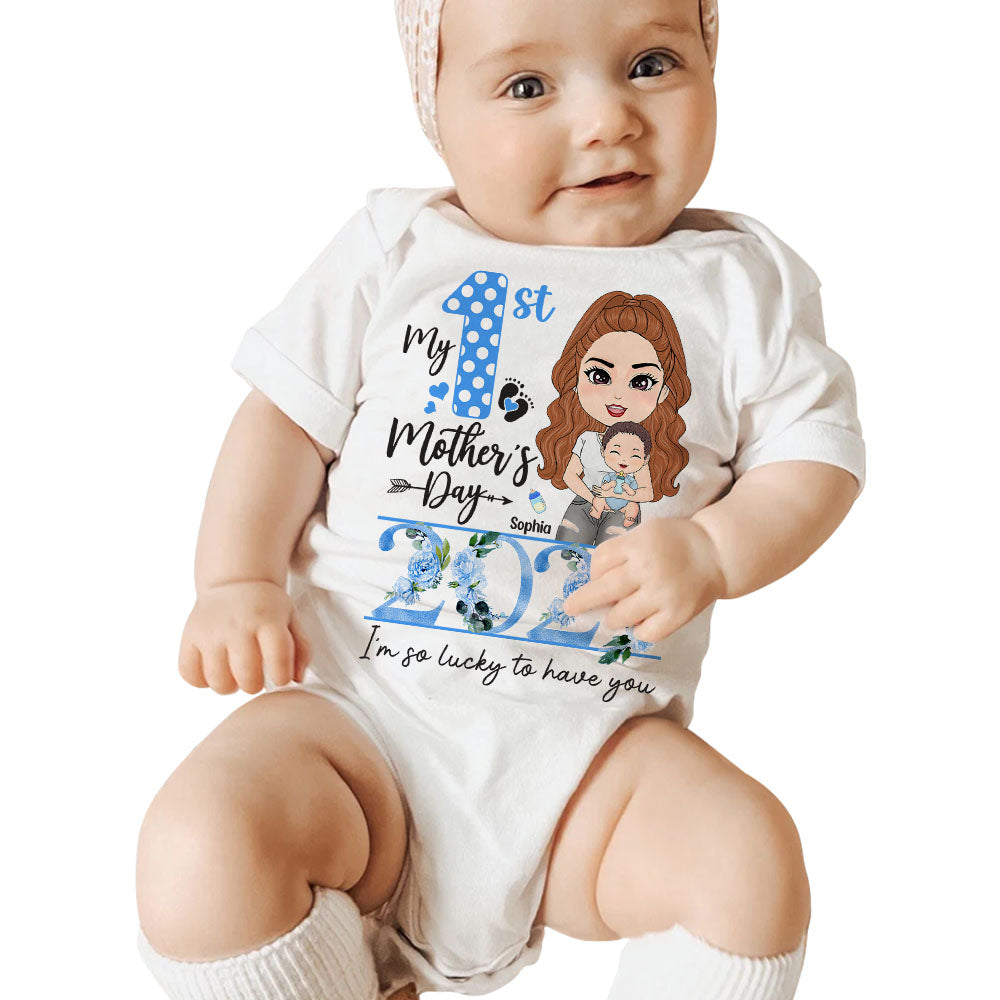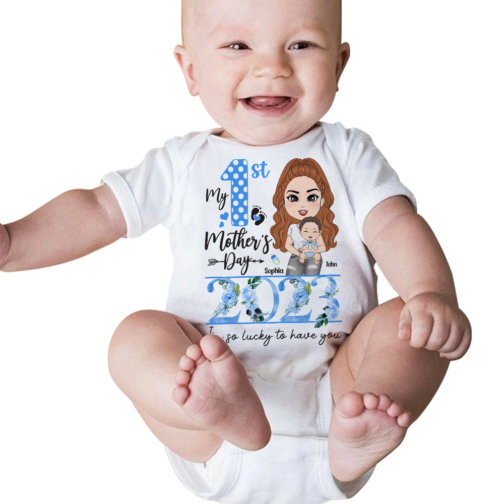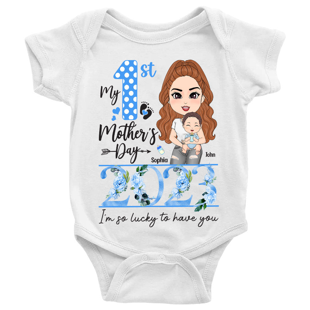 My 1st Mother's Day 2024 I Am So Lucky To Have You Custom shirt For First Mom Baby Onesie Gift H2511