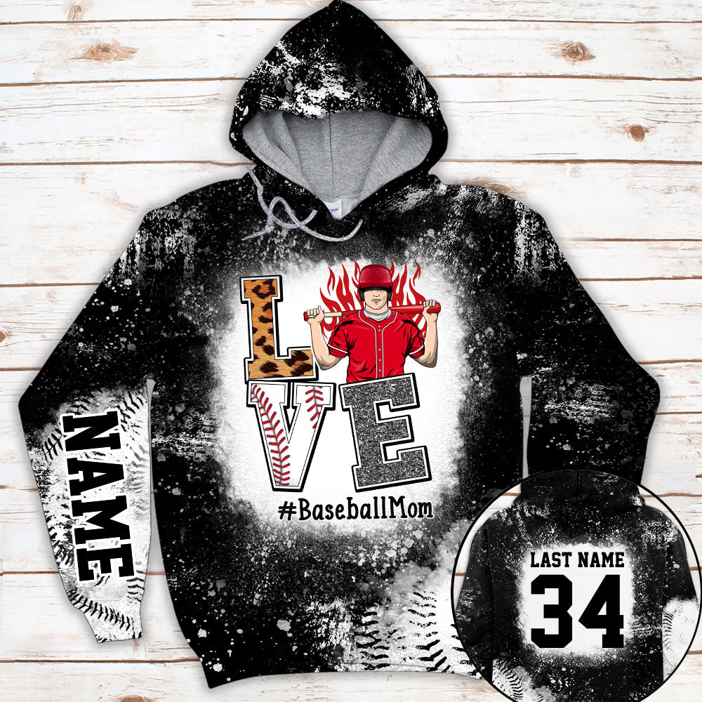 Personaliezd Shirt Love Baseball Mom Bleach All Over Print Shirt For Baseball Mom Grandma Baseball Family H2511
