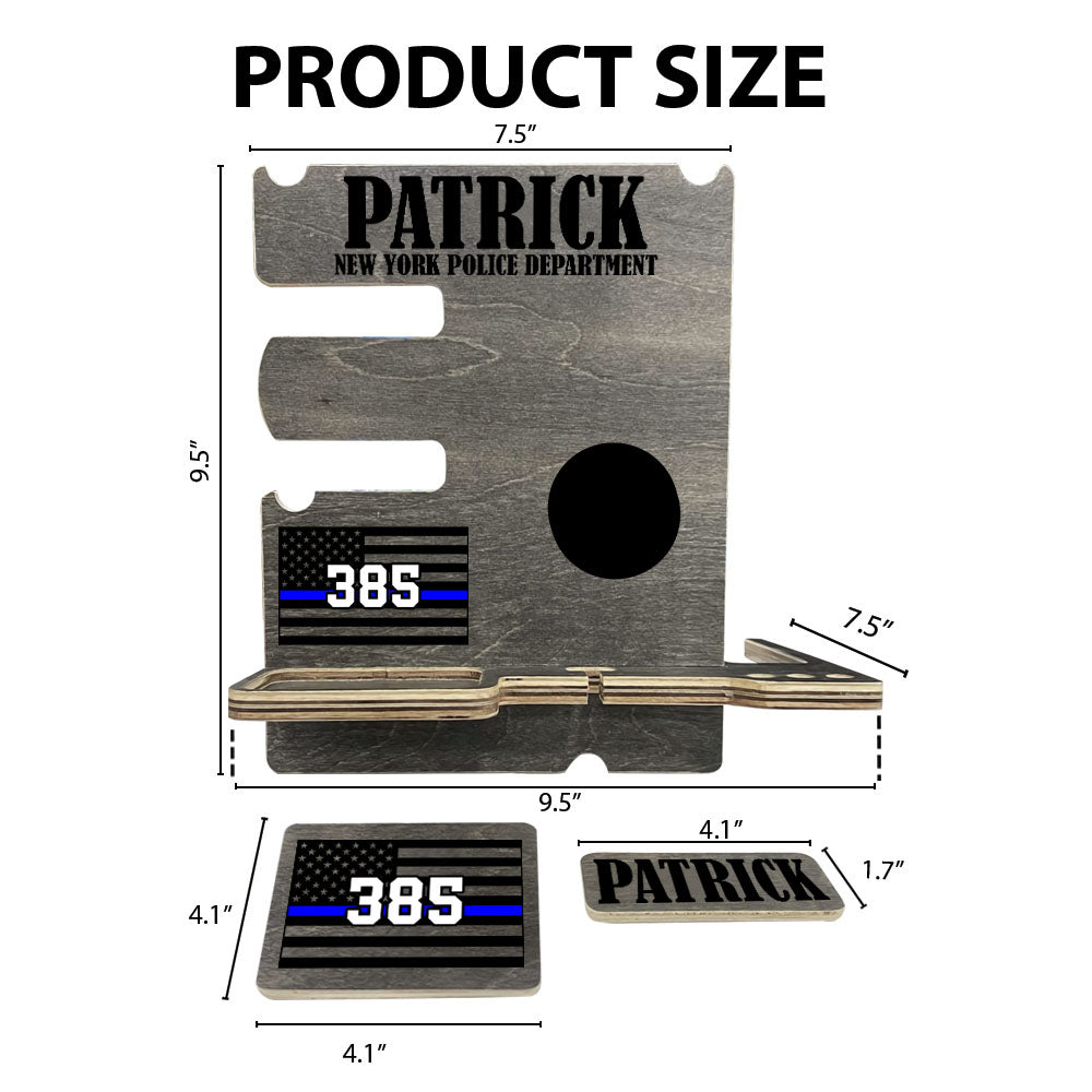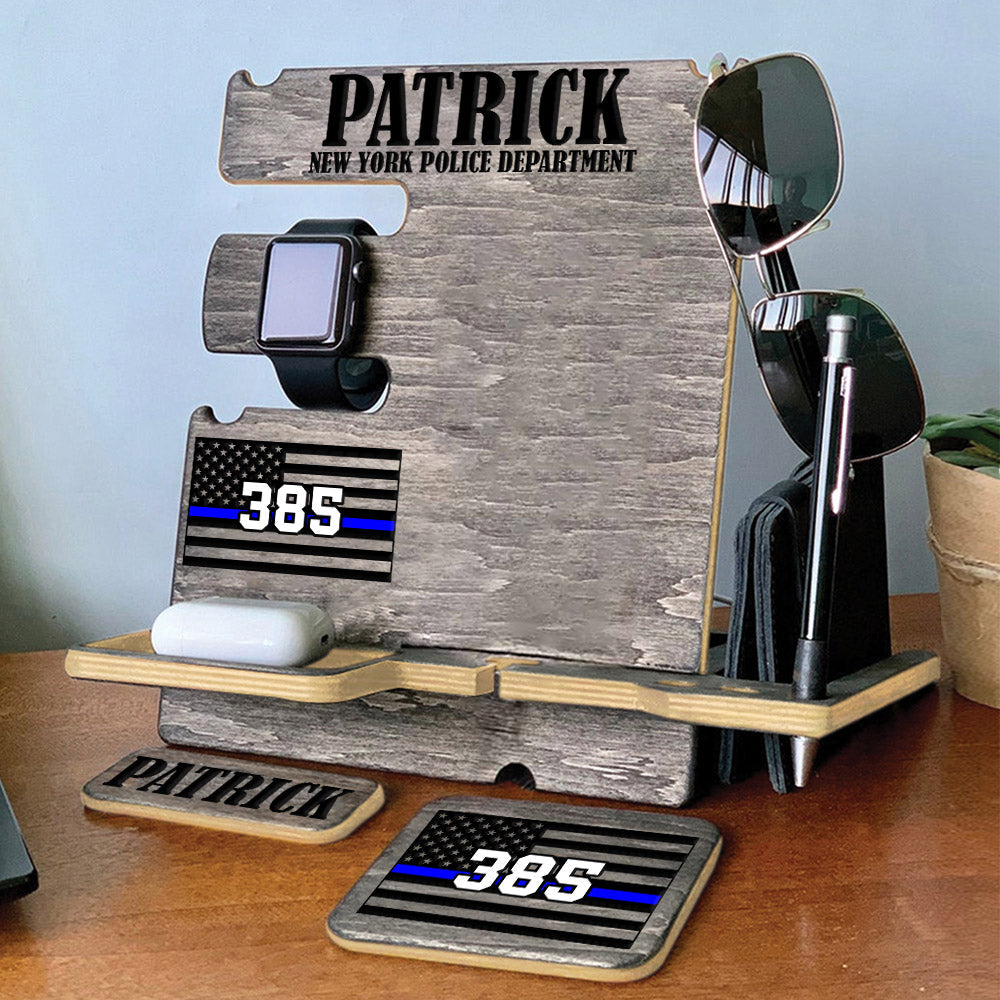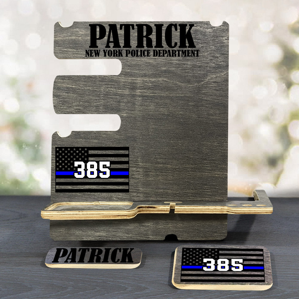Personalized Gift for Police Wood Docking Station Desk Organizer Custom Police Officer Gift Phone Stand H2511