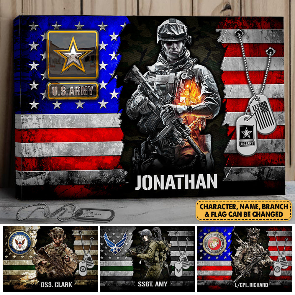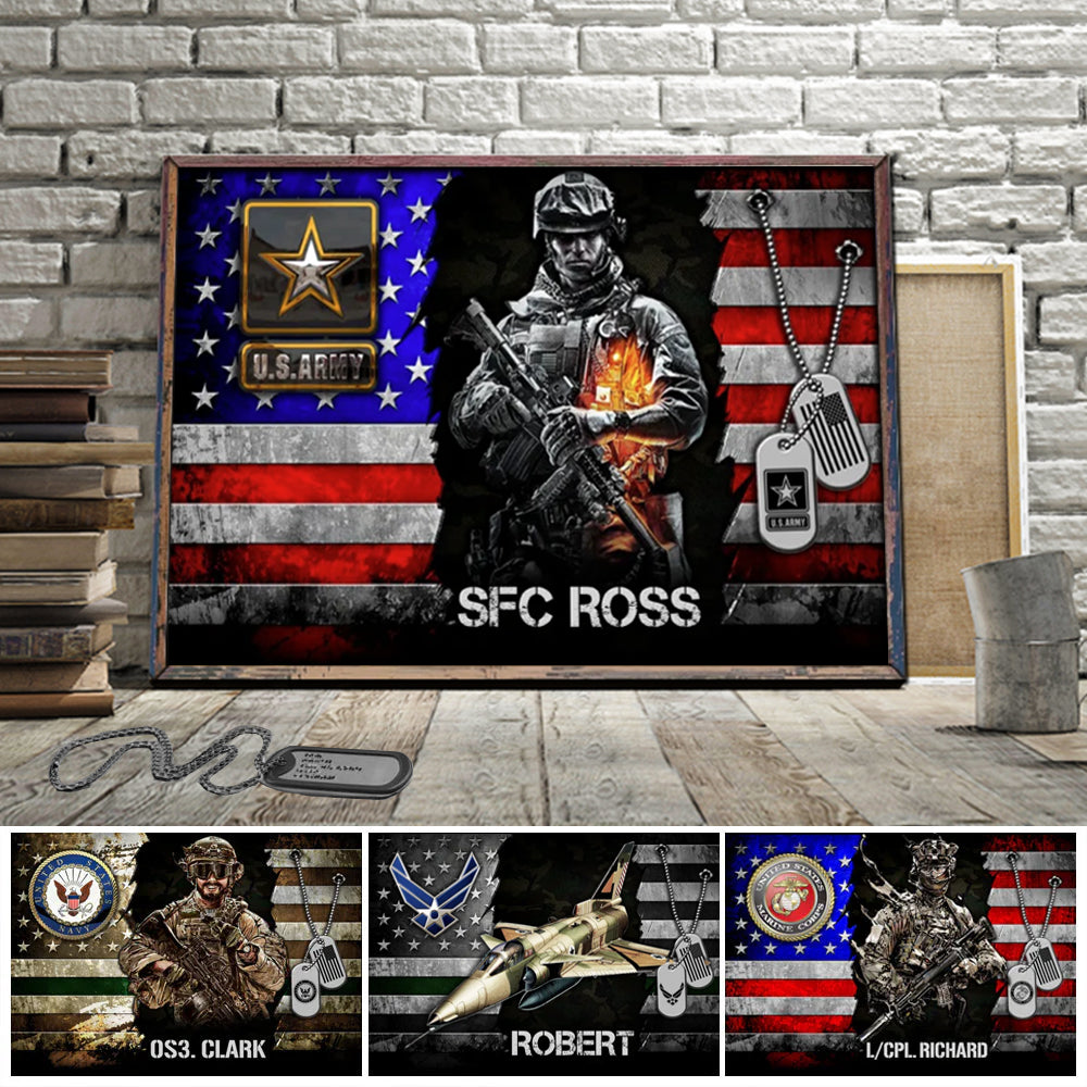 Personalized Gift For Veteran Custom Gift For Veteran Half Thin Green Line American Metal Flag Poster Canvas For Veterans H2511