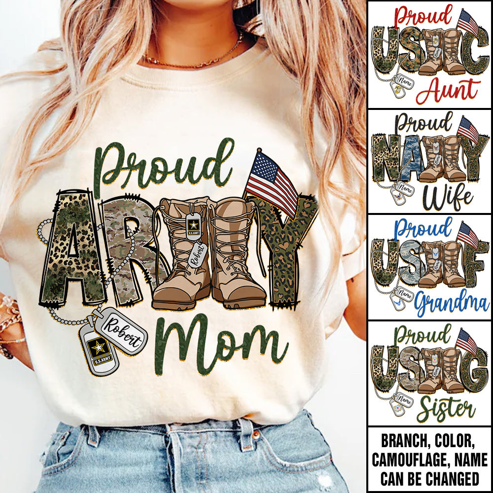 Proud Army Mom Sister Wife Grandma Military Combat Boots Custom Shirt For Military Family Member Military Training Graduation Day Shirt H2511