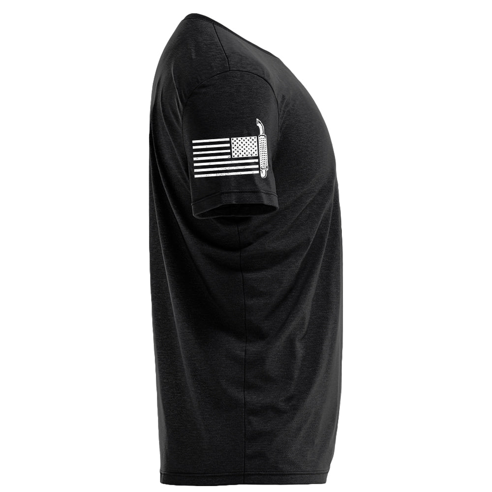 - Double-needle neck, sleeves, and bottom hem.