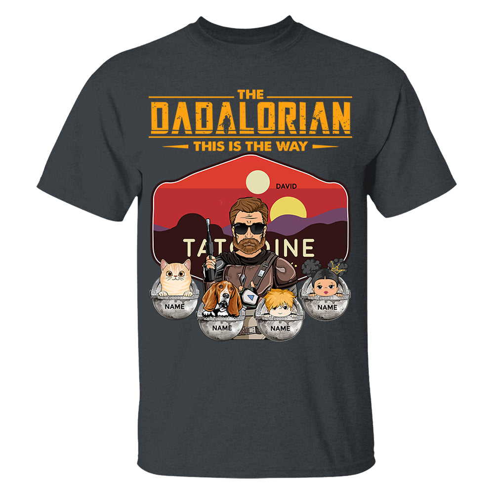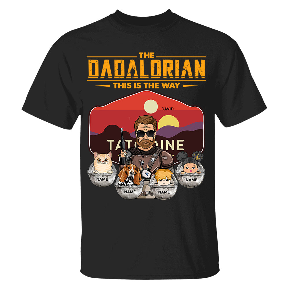 The Dadalorian - Personalized Shirt Gift For Dad Custom Nickname, Kid Pet New Version With Tatooine Sunset Shirt Gift For Dad