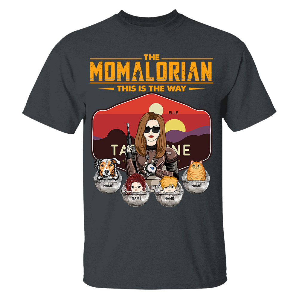 The Momalorian - Personalized Shirt Gift For Mom Custom Nickname, Kid Pet New Version With Tatooine Sunset Shirt Gift For Mom