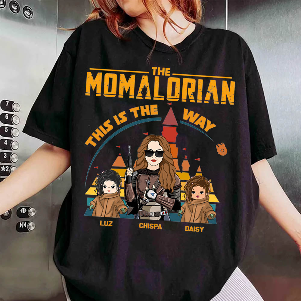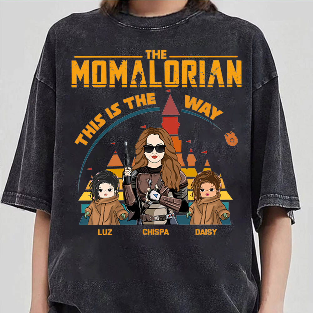 The Momalorian This Is The Way" personalized back print shirt, a special tribute to the superhero of your family – Mom! This exceptional shirt offers a unique opportunity to customize it, making it a heartfelt and memorable gift for Mother's Day or any occasion celebrating her.
