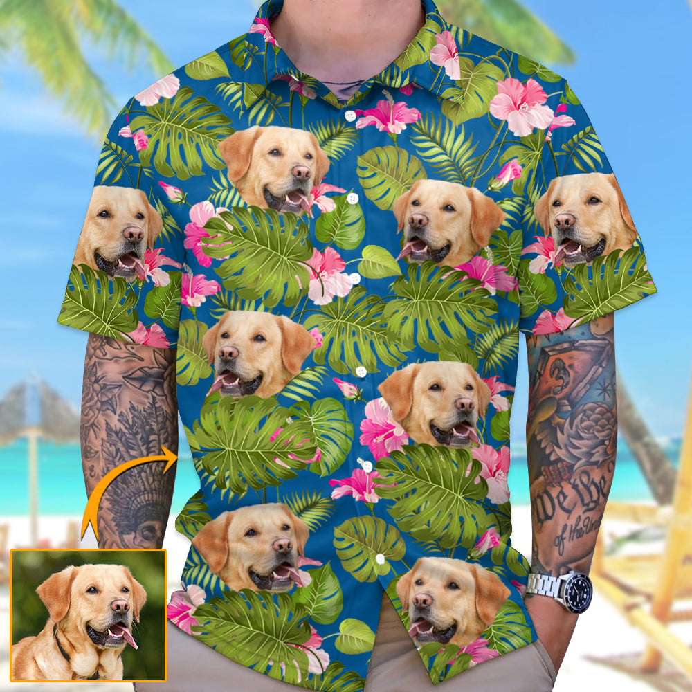 Tropical Leaf Photo Personalized Hawaiian Shirt For Dog Lover Dog Mom Dog Dad H2511