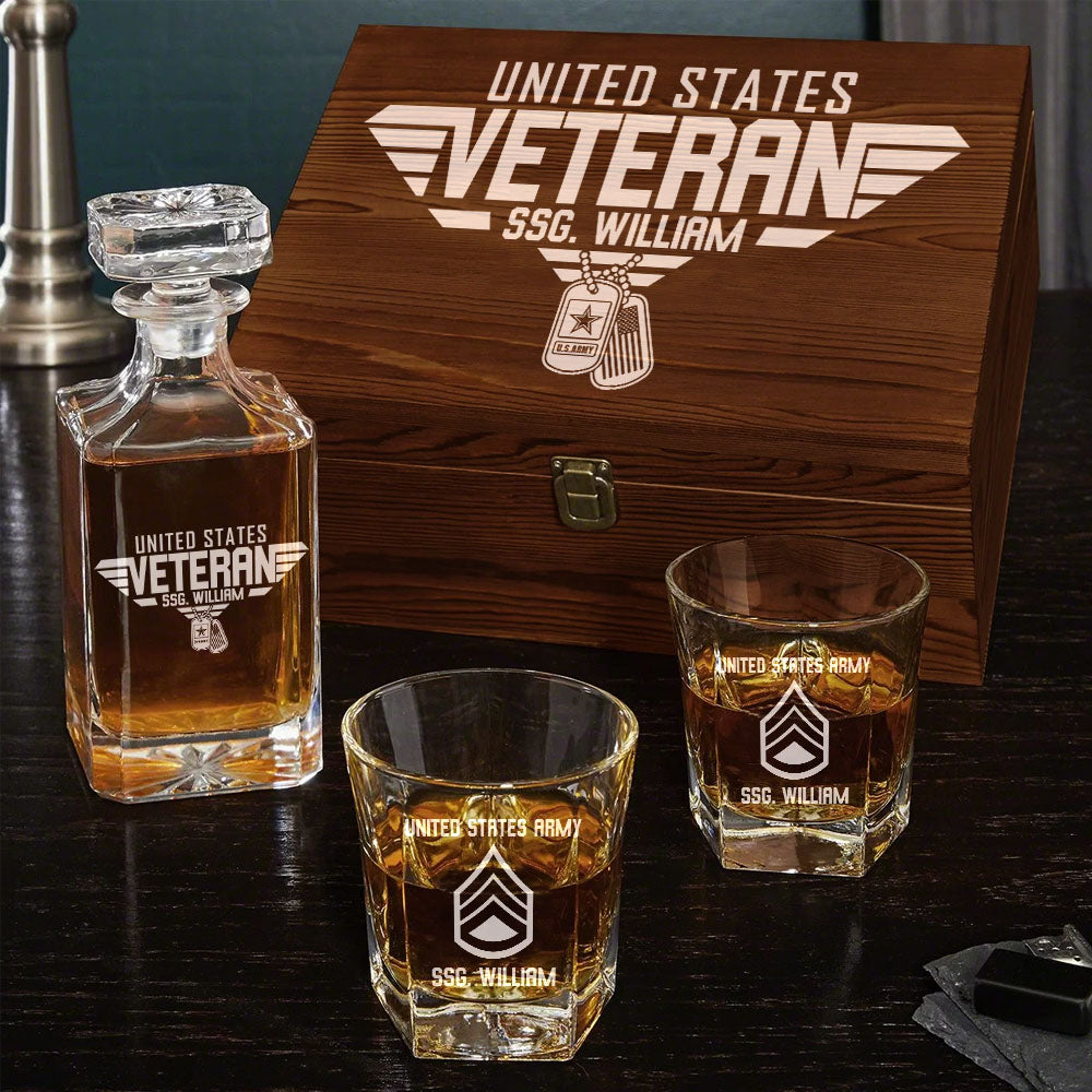 United States Veteran Custom All Branches Whiskey Decanter Set Gift For Veteran Dad Grandpa H2511